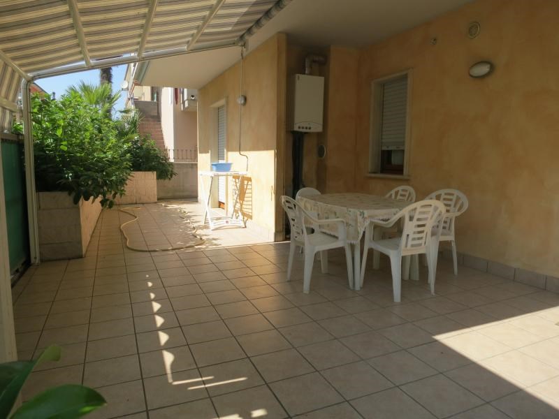 rif. PDA 001 AFFITTO ESTIVO - Appartamento in ottime condizioni in 2° fila mare, zona rotonda di Porto d'Ascoli (San Benedetto del Tronto), con ingresso indipendente al PIANO TERRA composto da ampio soggiorno con angolo cottura, corridoio, camera matrimoniale, camera doppia, bagno con vasca e finestra. Completa la proprietà una corte esterna pavimentata recintata dotata di tende da sole e attrezzata con tavolo e sedie, comodo per rimessa bici. Appartamento con 6 p. letto (tre in camera matrimoniale, due nella cameretta e un nuovo divano letto matrimoniale nel soggiorno). Completo di Forno, Tv, Lavatrice e Lavastoviglie.