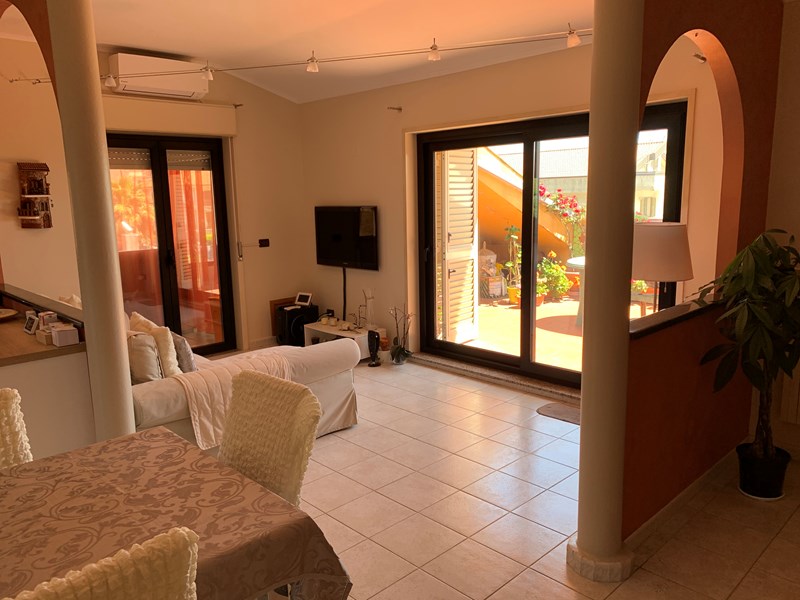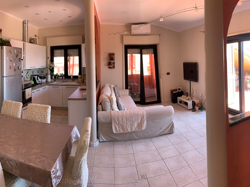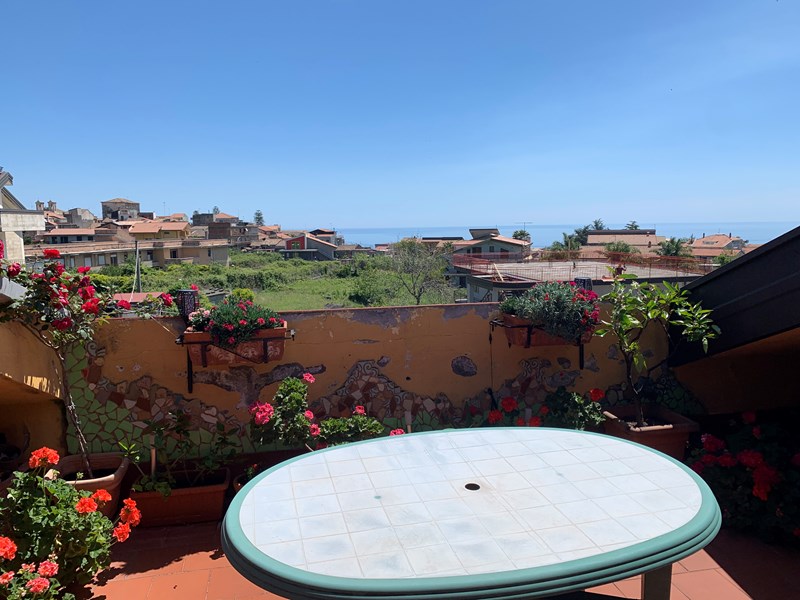 Vendesi bellissimo e luminosissimo appartamento ammobiliato, mansardato (tutta zona calpestabile), ristrutturato con lavori di riqualificazione energetica con sostituzione di infissi a taglio termico e contro soffitto. L'appartamento è ideale per neo sposi che necessitano una casa completa pronta per abitarvi. L'appartamento dispone di due terrazze, una vista mare ad est ed una altra vista Etna ad ovest, è situato in un condominio signorile di ottime rifiniture e di nuova costruzione.