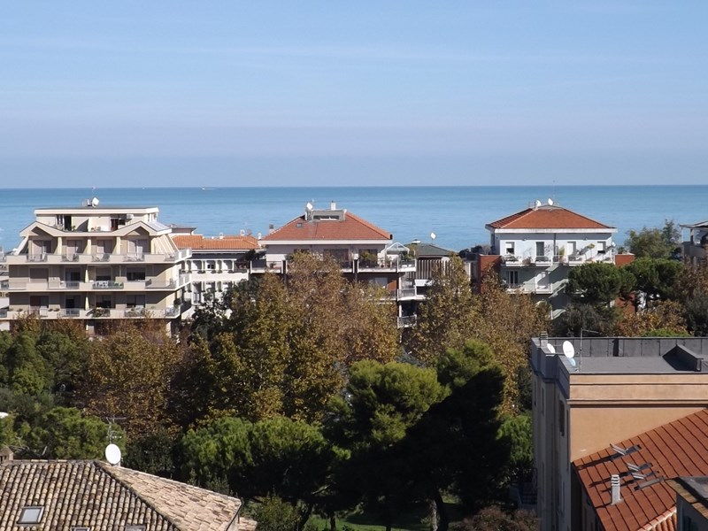 Panoramicissimo attico vista mare e monti, in centro città, vicinissimo alla spiaggia. Posto auto (per i residenti). L'appartamento, in ottime condizioni, è molto luminoso grazie alla tripla esposizione ovest-nord-est, con terrazzo perimetrale di 60 mq. e si sviluppa su due livelli: al piano settimo ampia zona giorno, cucina separata, bagno e terrazzo; al piano ottavo la zona notte comprende una camera matrimoniale, una cameretta con cabina armadio, bagno con vasca e doccia, 2 ripostigli, nonché ampio terrazzino panoramico. No agenzie. APE: F – Tel. 380/7580588.