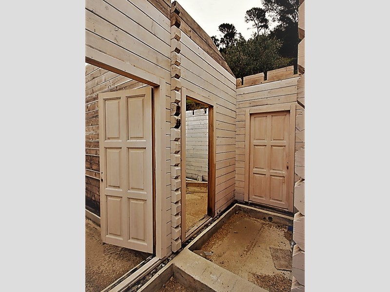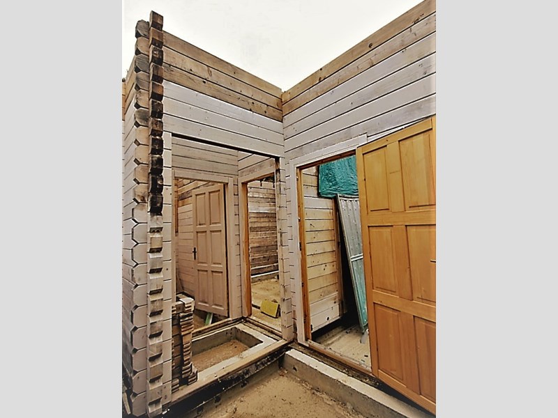 Travi e travetti in legno per il tetto , finestre e porte sono comprese.