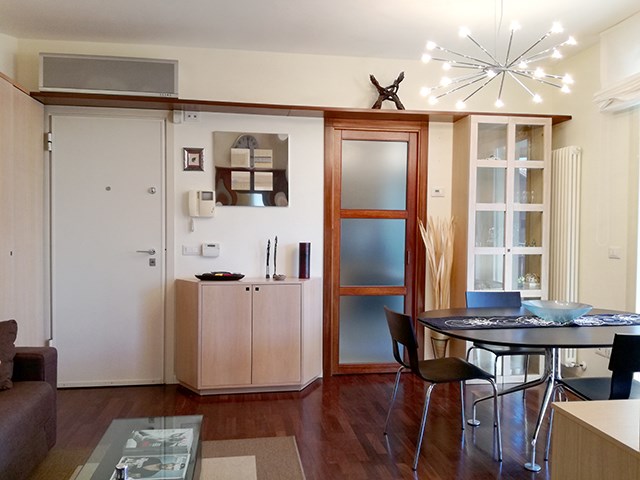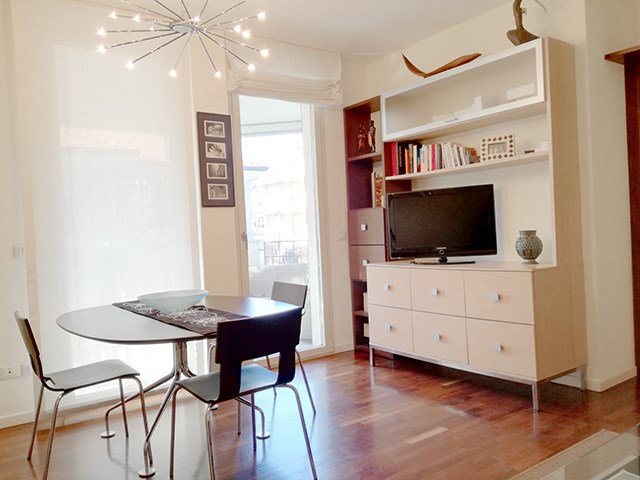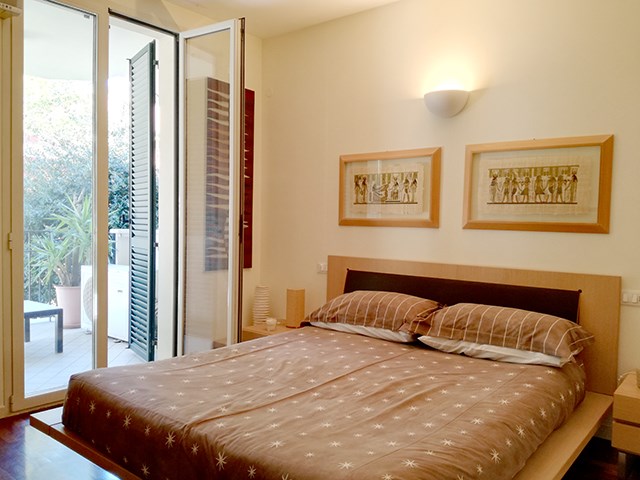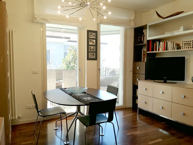 In contesto signorile di pregio vendiamo appartamento di lusso con ampi terrazzi di c.a. 90 mq e garage. l'immobile è ubicato in palazzina signorile a soli 100 m dal mare e comodo a tutti i servizi del viale Dante, è in prossimità della zona porto e comodo al centro. E' servito da ascensore e offre al suo ingresso una luminosa zona living che affaccia sul pregiato terrazzo di ampia metratura sul quale è possibile mangiare comodamente, il terrazzo è dotato di tende a chiusura verticale per la privacy. Alla zona giorno fa eco una cucina semi abitabile che affaccia sul terrazzo prospiciente la zona giorno, il reparto notte è distribuito in una camera doppia, una camera matrimoniale con terrazzo abitabile ed un comodo bagno doccia finestrato. Le finiture interne delle casa sono di ottima fattura, a terra troviamo un caldo ed accogliente parquet, le porte sono scorrevoli e tutto l'arredo che viene ceduto con l'immobile è fatto su misura con legni pregiati. Il riscaldamento ed il condizionamento sono autonomi. Nell'interrato, comodo alla rampa di ingresso troviamo un garage motorizzato.
