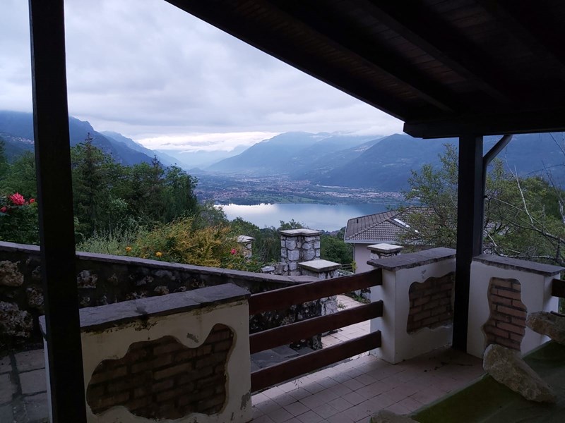 Proprietario vende direttamente bella villa bifamiliare vista lago con giardino privato completamente indipendente. Posta in collina, in posizione dominante, la villa si compone di soggiorno, cucina, bagno, disimpegno, due camere, studio vivibile (eventuale terza camera), atrio con secondo ingresso. All'esterno porticato panoramico, giardino terrazzato, locale caldaia. Completa la proprietà piazzale superiore e box al piano strada.