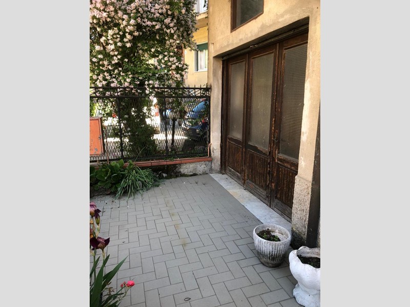 Casa semindipendente su due piani abitativi, costituita da: ingresso in corridoio comune, soggiorno, grande ripostiglio, cucina abitabile, vari accessi alla corte di esclusiva proprietà, al piano mezzanino bagno, al piano primo ingresso in disimpegno, soggiorno, cucina abitabile con accesso a balcone, camera. Con accesso dall'esterno locale uso cantina e magazzino. Possibilità di costituire ingresso con auto in garage. Da riqualificare, possibilità di acquisto unità a lato di uguale metratura ad Euro 50.000.