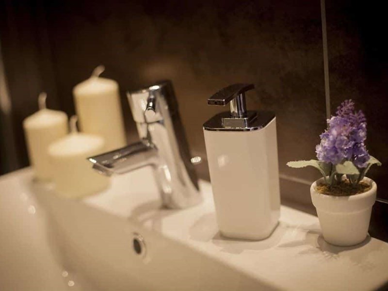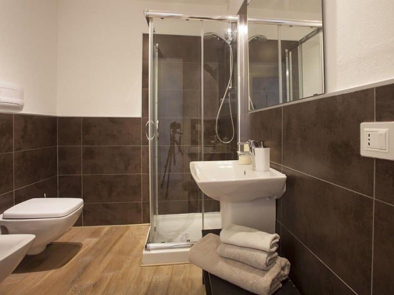 Il bagno ha la vasca da bagno e doccia nello stesso tempo, c'e naturalmente il WC, ed un lavello;