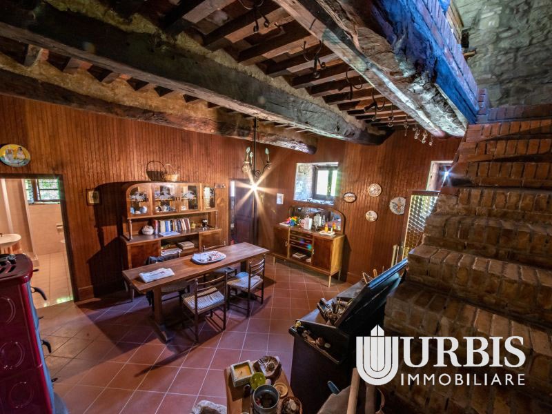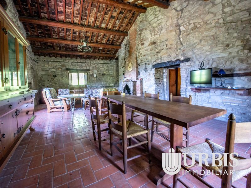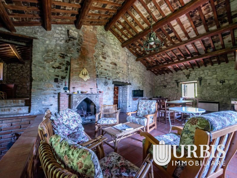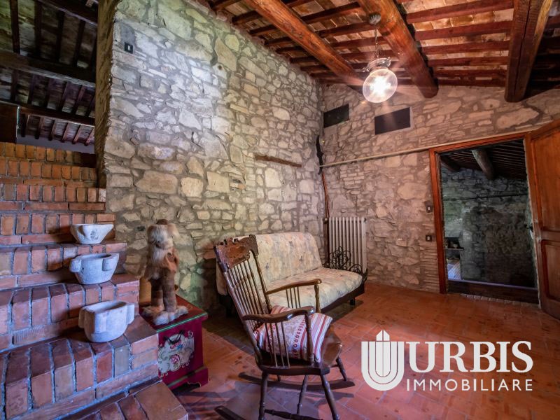 Tipico casolare umbro posto sulla sommità di una collina retrostante il centro storico di Assisi, a circa 3 km da esso. Lo stesso é articolato su tre livelli, con superficie complessiva di 200 mq destinato ad abitazione. La superficie è stata suddivisa in soggiorno, cucina , e due vani magazzini al piano terra, due camere da letto ed un bagno al piano primo e una terza camera sulla torretta all’ultimo piano. Completa la proprietà un’area esterna di circa 12000 mq di terreno
