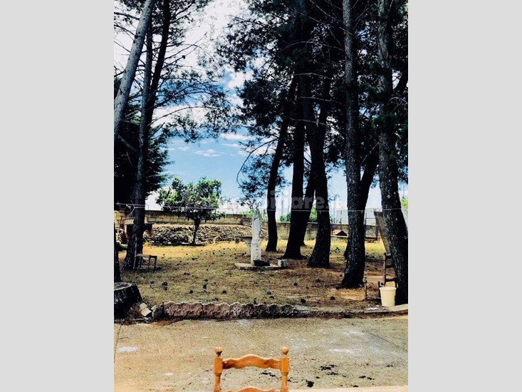 Fabbricato + un trullo con pineta antistante adibita con panchine e tavoli in pietra. La cucina open space con annesso soggiorno con caminetto, composta da due/tre camere da letto di cui due matrimoniale e bagno fornito di vasca.L'immobile è dotato d'acqua con allaccio all'AQP, due caminetti. Ha bisogno di alcuni lavori di manutenzione e non è dotato di impianto di termosifoni. Ampio parcheggio interno. Terreno di circa 4500 mq.