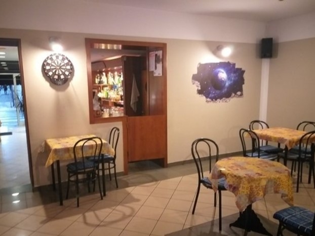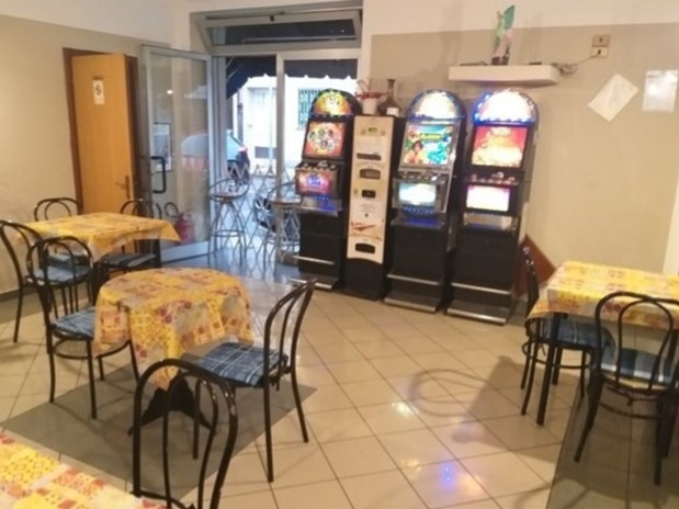 Gestione di snack bar di 100mq composto da sala con bancone, sala con tavoli e slot, bagno clienti, bagno privato con spogliatoio e cucina.