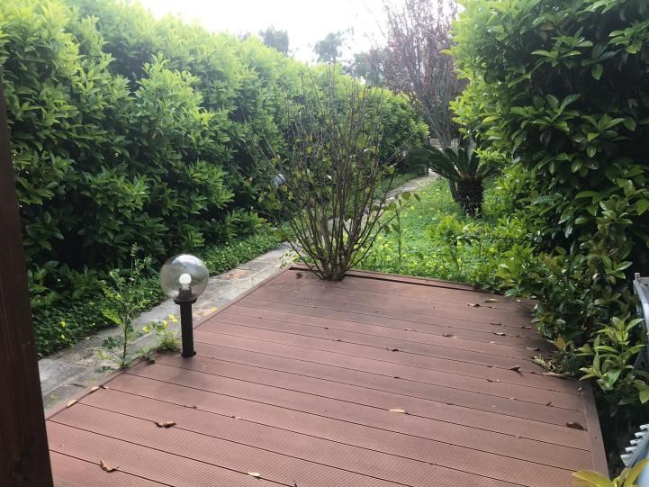 Giardino di circa 80 mq ben piantumato, con doccia esterna.
