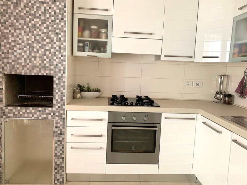 Caratteristiche: grès porcellanato zona giorno, parquet bianco zona notte, infissi a taglio termico, tapparelle e zanzariere elettriche, domotica centralizzata, panelli solari, impianto di ventilazione meccanica a soffitto, impianto di aspirazione a muro (aspirapolvere Tubò), filodiffusione, allarme, rilevatore fumi e gas, videocitofono, porta blindata.