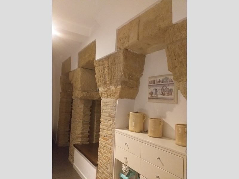 Abitazione situata in una zona tranquilla all'entrata principale del paese, a 100 metri dal resort del Regista Francis Ford Coppola, e dal centro del paese C.so Umberto. Abitazione a piano terra di 73mq, dispone di un piccolo giardino di 21mq. L'unità è composta da ingresso open space( soggiorno/cucina) 2camere da letto, 1 bagno. L'immobile si presenta molto luminoso. L'appartamento moderno ricavato da un antico frantoio dell' 800, visibile il colonnato con le antiche presse restaurate.