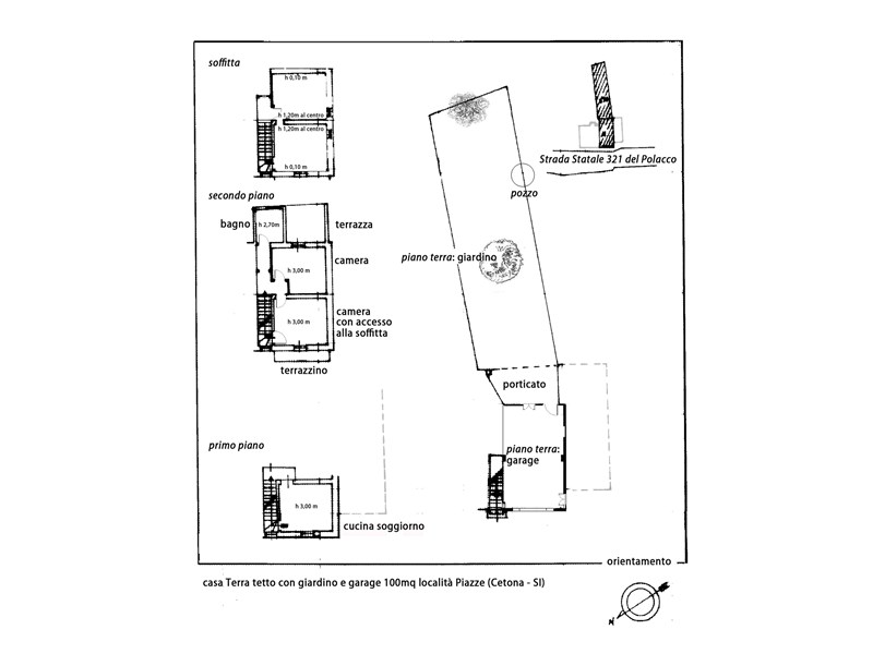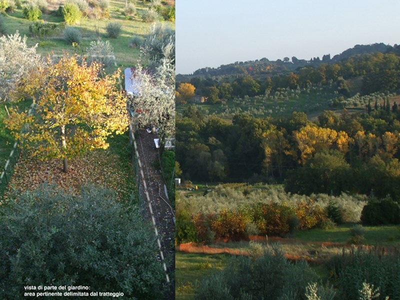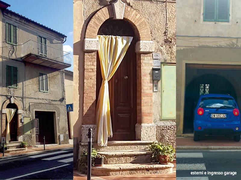 Appartamento Terra/tetto con ingresso da scale e portone condominiali, disposto al piano primo e secondo, con garage al piano terra che da su strada principale; è composto da cucina, due camere, un bagno, un ampio terrazzo con vista sulle colline toscane e sulla torre di Fighine e un terrazzino lato strada. Al piano terra è un giardino privato con accesso direttamente dal retro del garage.