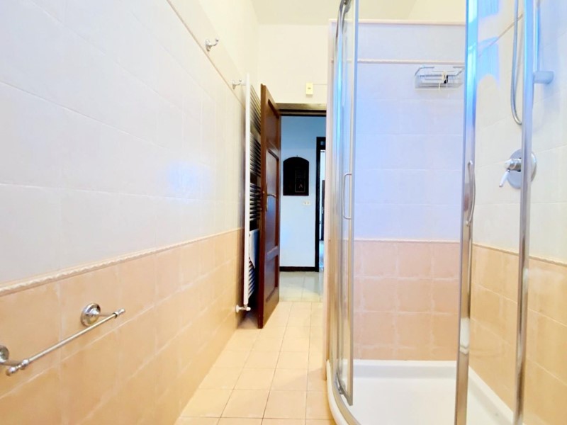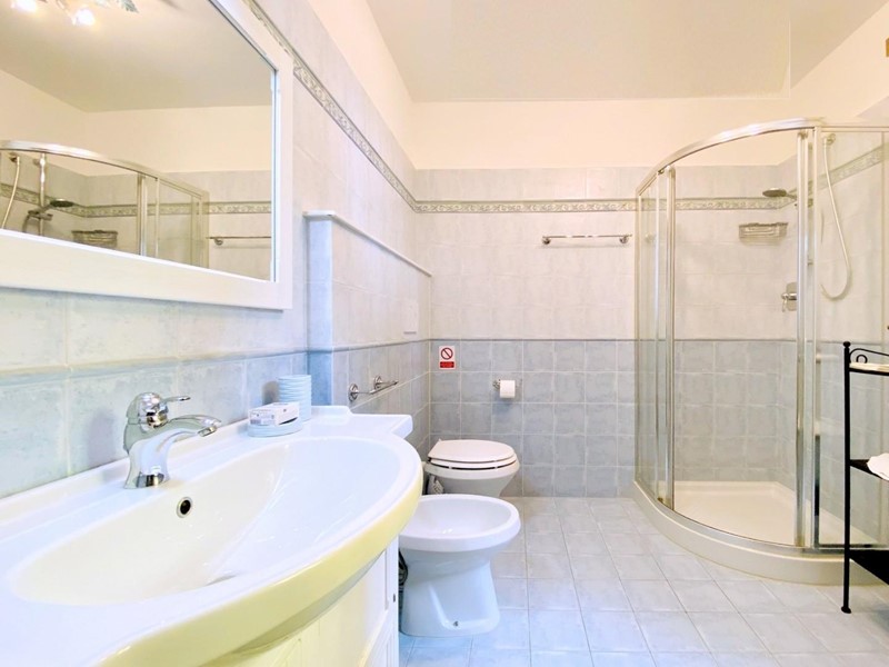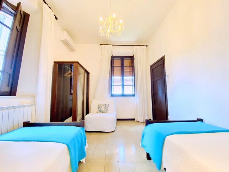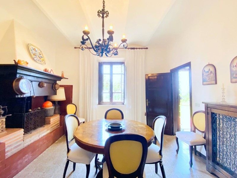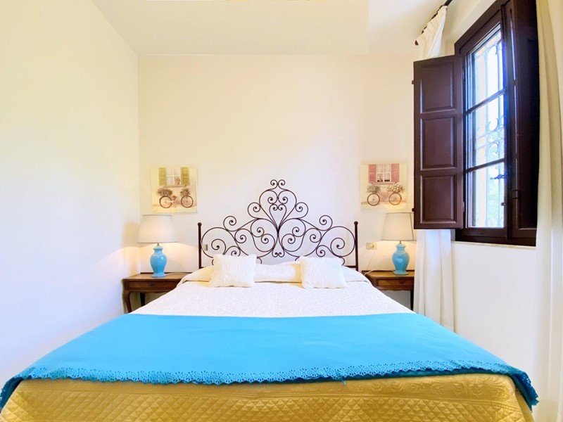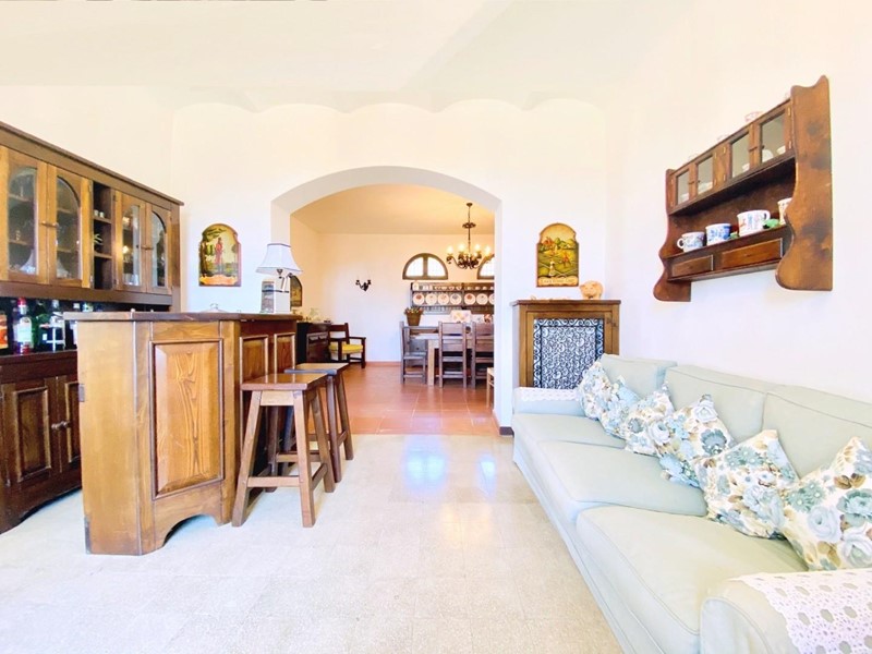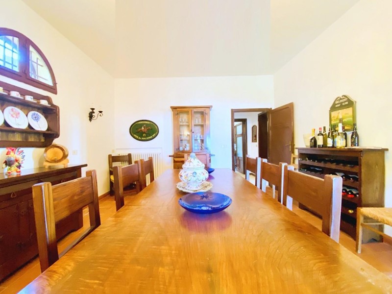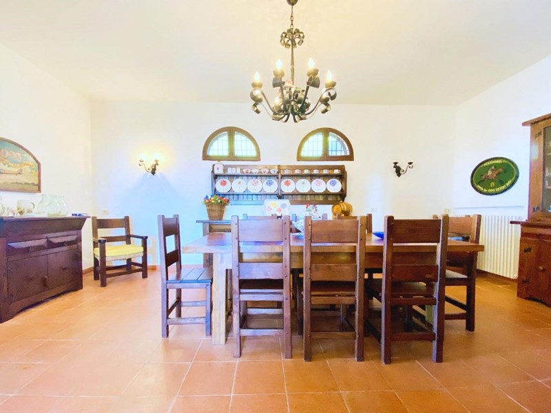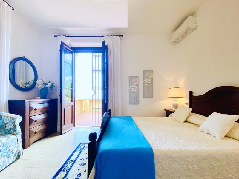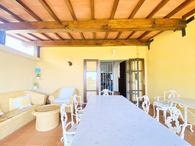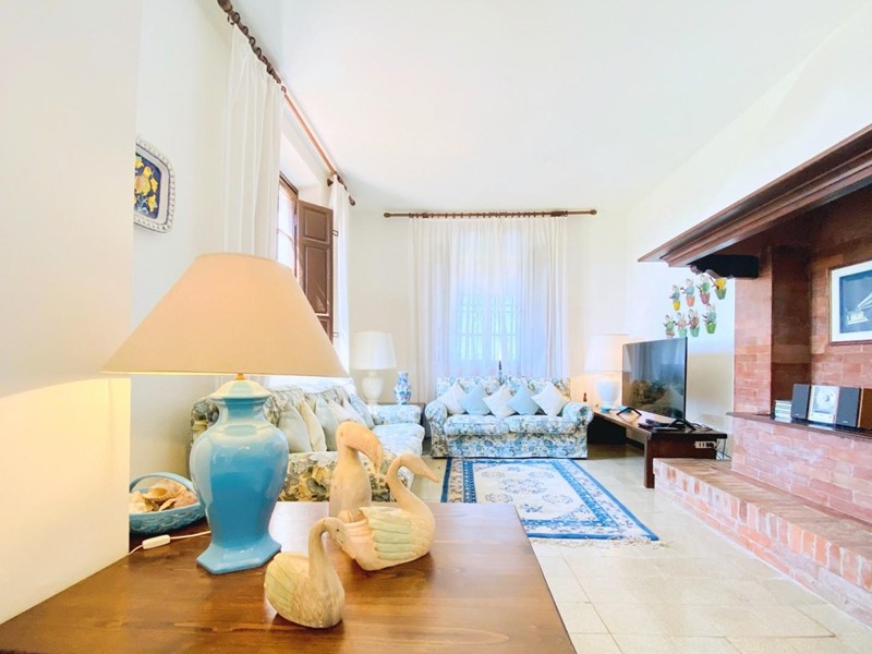 L'unità principale in villa si suddivide su due livelli fuori terra. L'ingresso principale avviene nel disimpegno. Il piano terreno ospita la zona giorno. Gli spaziosi ambienti si suddividono in soggiorno con camino, zona TV e sala pranzo. Le importanti aperture fuoriescono su una splendida e riservata veranda dal quale si domina il giardino e la piscina. Attraverso il disimpegno si raggiunge la cucina abitabile ed una seconda sala pranzo con camino. Il piano terreno ospita un primo bagno. Attraverso la scala in pietra si raggiunge il piano superiore dove trova posto la zona notte della casa. Le camere da letto sono ben quattro, tutte matrimoniali. La stanza padronale fruisce di una terrazza con vista sul mare. I bagni che servono questo ambiente sono due. Parte dei vani risultano condizionati.