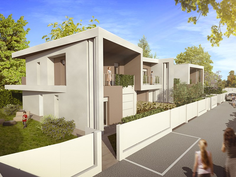 Zona San Vito di Vigonza in fase di edificazione nuova porzione di bifamiliare sviluppata tra piano terra e primo con ampia zona living e cucina, disimpegno, locale tecnico, due bagni, tre camere, terrazzi, garage, posti auto e giardino ad uso esclusivo.