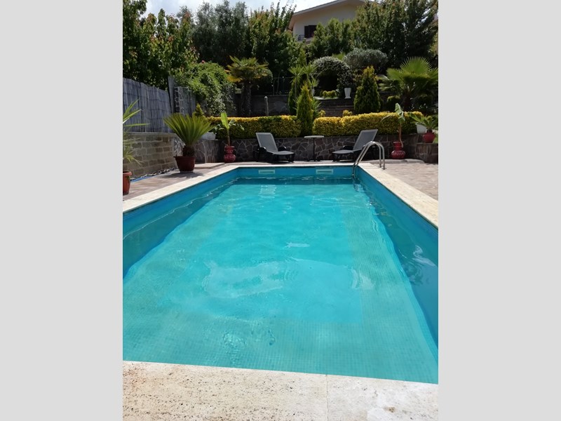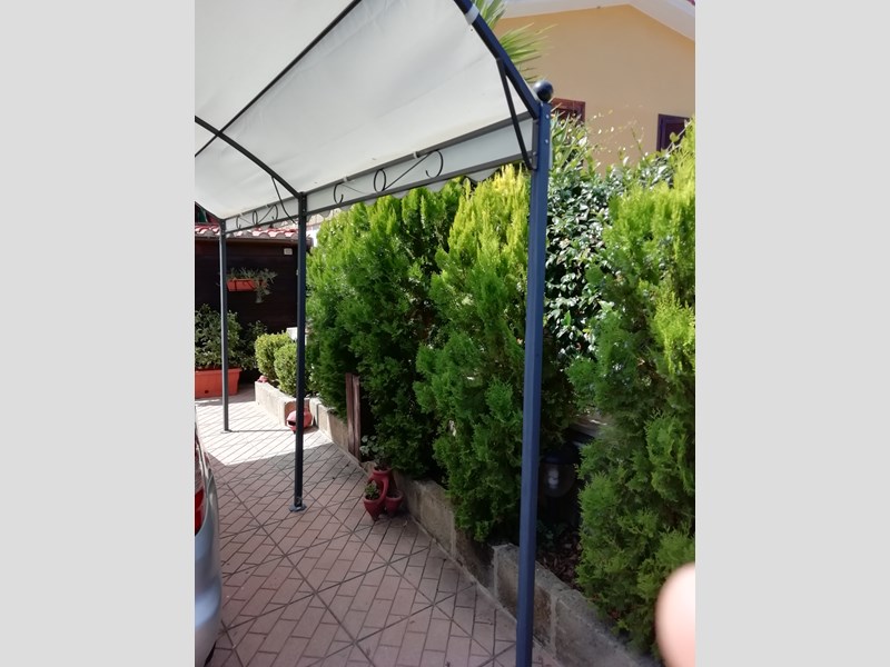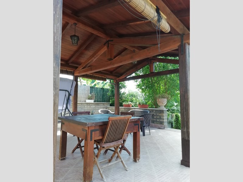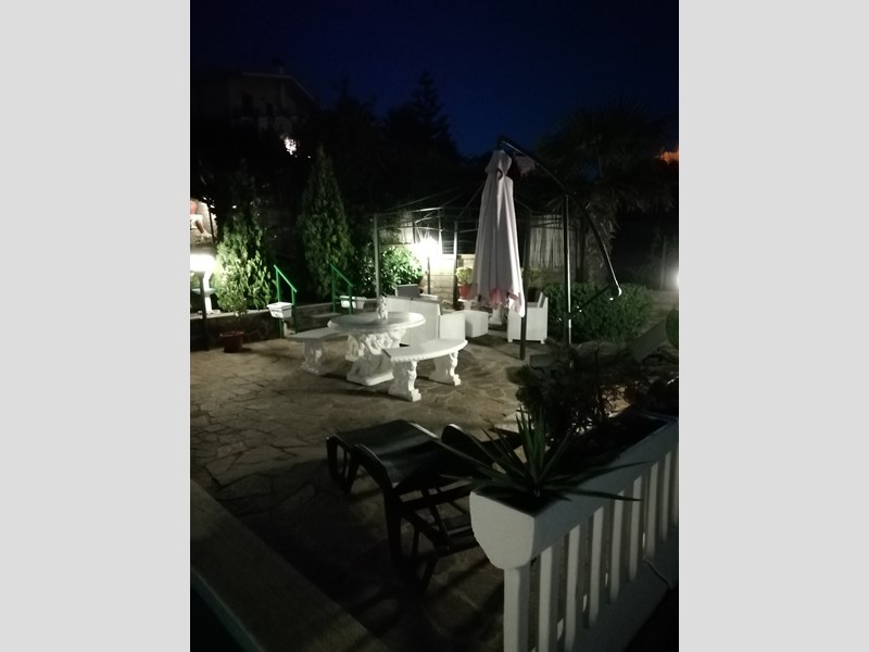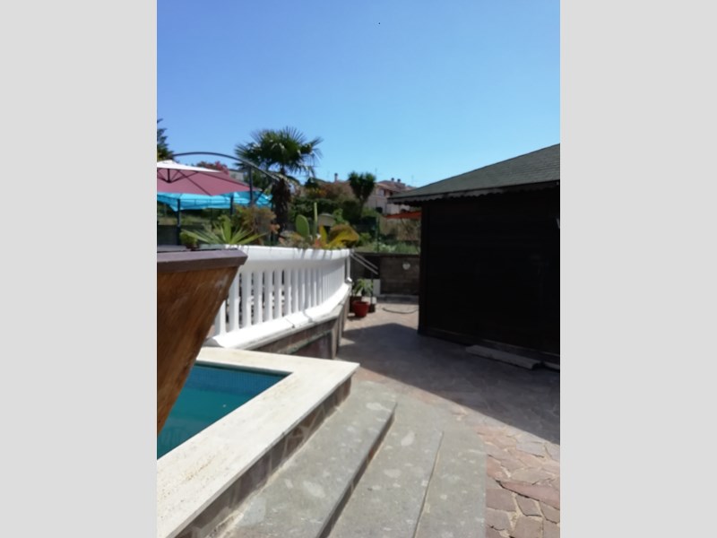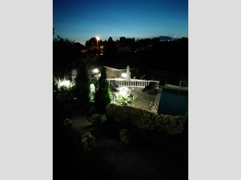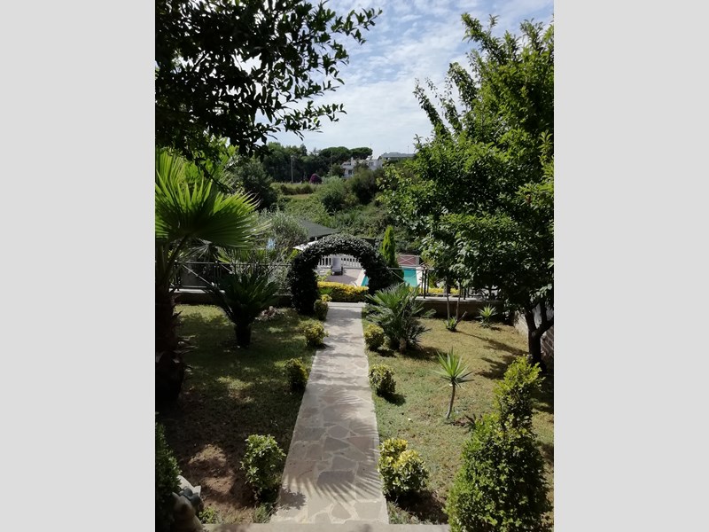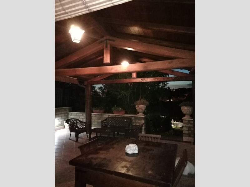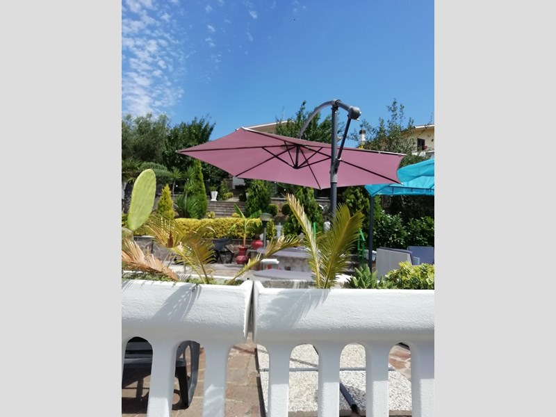 Salone con camino con vetrata, Cucina in muratura abitabile completa, anti bagno, Bagno grande con vasca idromassaggio, Camera matrimoniale. Primo piano, entrata, Cucina componibie abitabile completa, salotto con parete attrezzata completa, corridoio, bagno con doccia cristallo, camera matrimoniale con affaccio e armadio a muro. Piano 2, camera matrimoniale con armadio a muro, terrazzo. Cameretta con terrazzo, bagno con cabina doccia e servizi lavanderia,. Piano terzo solarium con zona tecnica con caldaia e grande sgabuzzino con porte scorrevoli. Tutti i piani sono con citofono, al centro con telecamera. Tutti gli ambienti sono con allarme perimetrale. Tutte le finestre e porte finestre sono con allarme. Tutte le finestre e porte finestre sono con inferriate con chiavature europee non clonabili di ultima generazione. Giardino lato sud cancello carrabile elettrico con telecomando più cancello pedonale, posto auto. Porticato con entrata al piano terra con casetta di legno x servizi, fontana e aiuole con bellissimi pini. Giardino lato nord porticato in castagno 50 mq barbecue in cemento, piccola cucina con lavandino tutto circondato da piante. Il giardino continua con prato ed alberi da frutto tutto curato nei particolari e servito con irrigazione con sensori pioggia. Ancora troviamo una piscina interrata 10x3x2 tutta in maioliche azzurre e BLU. Continua con 2 casette di legno di cui una adibita come chiosco x piscina da 15 mq, l'altra per ricovero attrezzi. Cancello scorrevole 4 Mt. Il tutto viene servito da pozzo artesiano con varie fontane sparse x tutta la proprietà. Villa molto bella e curata nei particolari su tutto. La villa viene venduta arredata completa. Non bisogna di nessun intervento. X altre info contattatemi tramite mail N. B. NON VOGLIO ESSERE CONTATTATO DA AGENZIE NÉ DA AGENTI TELEMARKETING ECC.ECC. La villa viene venduta x trasferimento dei proprietari.