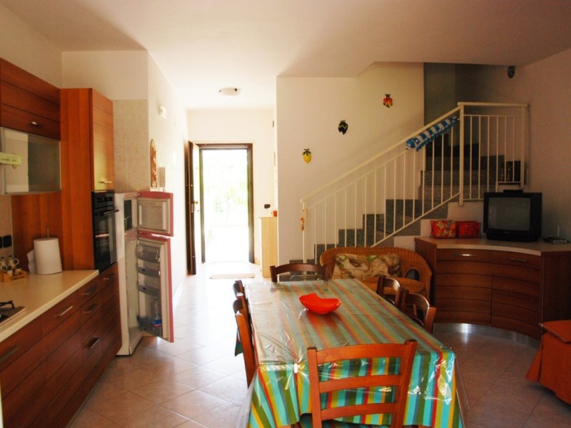 Villetta a schiera con due spazi esterni uno x pranzare e l'altro x auto, ingresso soggiorno con cucina grande ed un bagno con doccia e lavatrice e lavatoio water e bidè, salendo la prima rampa di scale si accede alle due camere matrimoniali con bagno con vasca e igienici, una camera matrimoniale ha il balcone e l altra ha la finestra, salendo un altra rampa si accede alla mansarda con letto matrimoniale e lettino, volendo si possono aggiungere altri letti, arredata nuova, distanza dal mare 400mt negozi nelle vicinanze, serbatoio x acqua nel box, impianto di riscaldamento con caldaia, tenda da sole, prezzo 185000, località Casal velino marina, con possibilità di acquisto anche la villetta a fianco con box di50mq al prezzo di €190000,recente costruzione, il contesto di è formato di 7 villette, solo una spesa condominiale annua di circa 70€.per inf tel 3389638399 Valentina