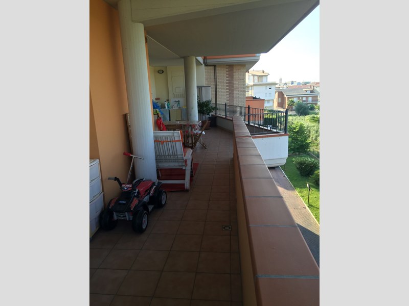 Vendesi luminoso trilocale di 100 mq commerciali al terzo piano con ascensore di un condominio signorile di recente costruzione all'inizio di via Roma a Martinsicuro. L'immobile si compone di ingresso su soggiorno che accede ad ampio terrazzo coperto di 40 mq, cucina abitabile, disimpegno zona notte, bagno finestrato con cabina doccia doppia , ampia camera matrimoniale e cameretta. Completano la proprietà un comodo posto auto privato recintato ed un box auto di 30 mq al piano terra con accesso alle scale da computare a parte. Dotato inoltre di cisterna idrica privata di 2.000 lt oltre a quella condominiale. Riscaldamento autonomo a metano con caldaia a condensazione ed infissi in legno doppio vetro. Classe Energetica F. IPE 135,35 Kwh/mq anno. Spese condominiali 35 Euro/mese. Prezzo 118.000 €