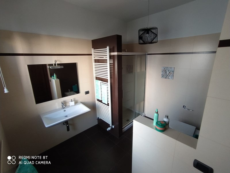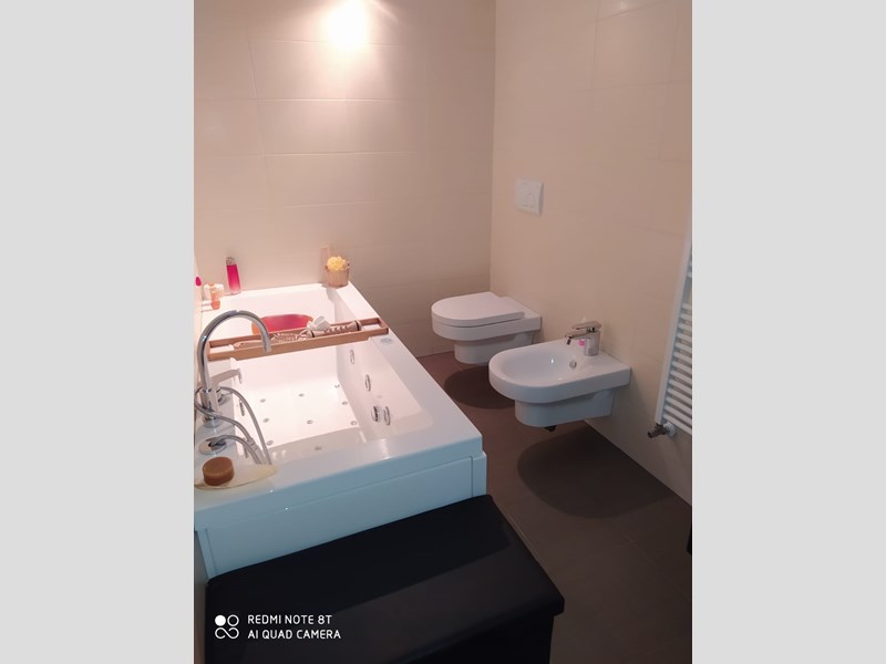 Tutti e 3 i bagni sono arredati con sanitari sopsesi e rivestimenti in gres; due sono dotati di box doccia e uno di vasca idromassaggio polifunzionale.