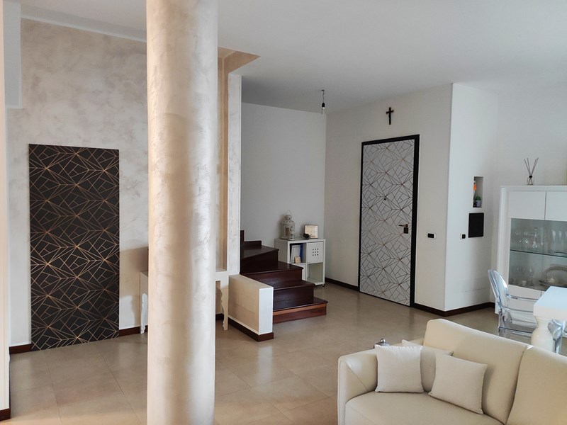 La casa è un 5 vani con 3 camere e 3 bagni, caratterizzata da finiture di pregio; si sviluppa su due livelli per una superficie di circa 150 mq cui si somma uno scoperto retrostante di 30 mq.