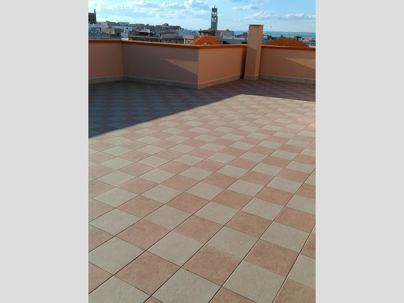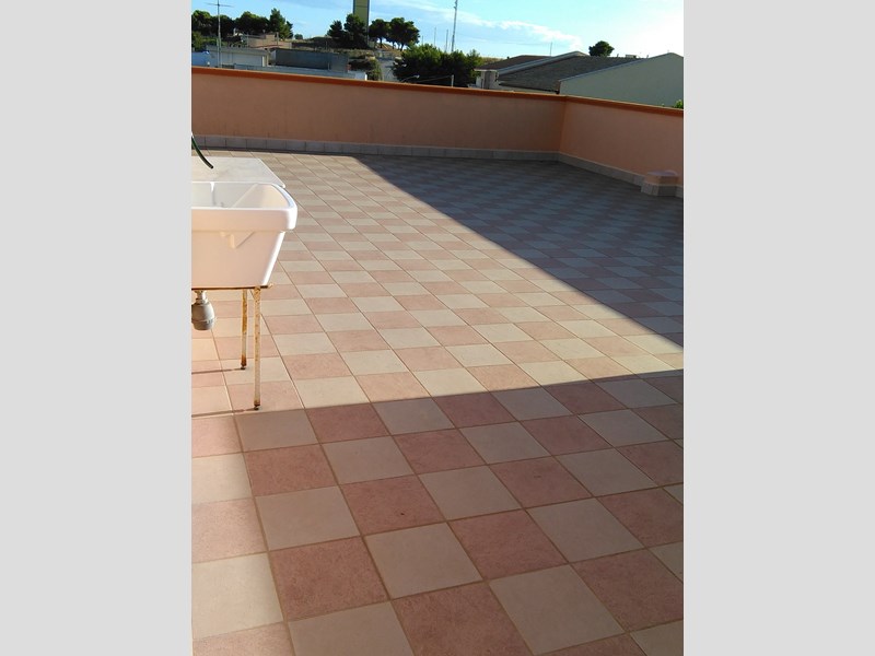 -TERRAZZO: CIRCA 100MQ; PAVIMENTO IN GRES PORCELLANATO A SCACCHI CON IMPIANTO ACQUA E LUCE.