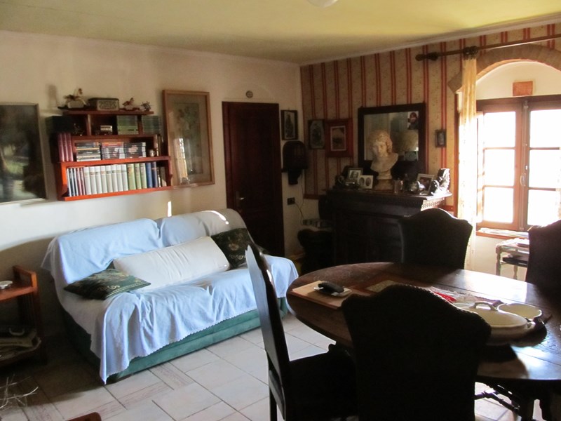 Casale di campagna di 200 metri quadrati con 2 ettari e mezzo di terreno che comprende giardino, balze con ulivi, alberi da frutto e bosco. All'interno sono presenti 4 camere da letto, 2 sale con camino, cucina in muratura, 2 bagni e una stanza adibita a ripostiglio con un grande forno a legna, con volta ed essiccatoio. Al piano superiore soffitto con travi e travicelli a vista e pavimenti ed infissi originali dell'epoca. Sul perimetro esterno sono presenti dei ripostigli e una piccola cucina. Il riscaldamento funziona con GPL.