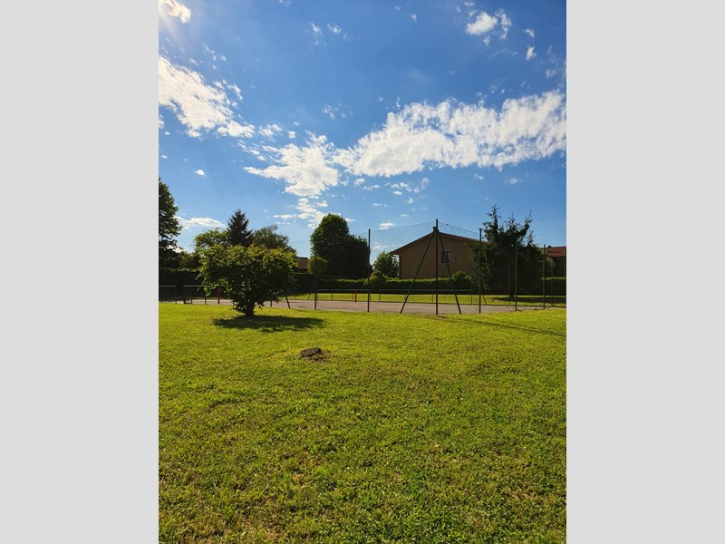 Appartamento di 4 locali al piano terra di circa 107 mq in ottime condizioni e subito abitabile. Composto da soggiorno con cucina a vista, tre camere da letto, di cui una con servizio privato, bagno con vasca e attacchi lavatrice e due lastrico solari su due lati. Completano l'immobile in oggetto un box singolo e una cantina. Fa parte di un elegante condominio con giardini comuni e campo da tennis. Basse le spese mensili, che si attestano tra i 50 e i 60 euro. Cappotto termico e predisposizione per impianto di climatizzazione. Doppia esposizione.