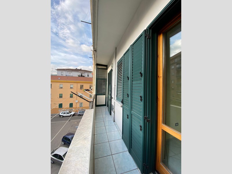 L’ appartamento è composto da: cucina soggiorno con balcone, 1 cameretta con balcone,1 bagno con finestra; la cameretta e i servizi danno su lungo balcone ad incasso con esposizione sud-ovest; 1 camera matrimoniale molto ampia dotata di finestra esposta ad Est;1 ripostiglio e 1 lavanderia ubicati all’esterno sul balcone