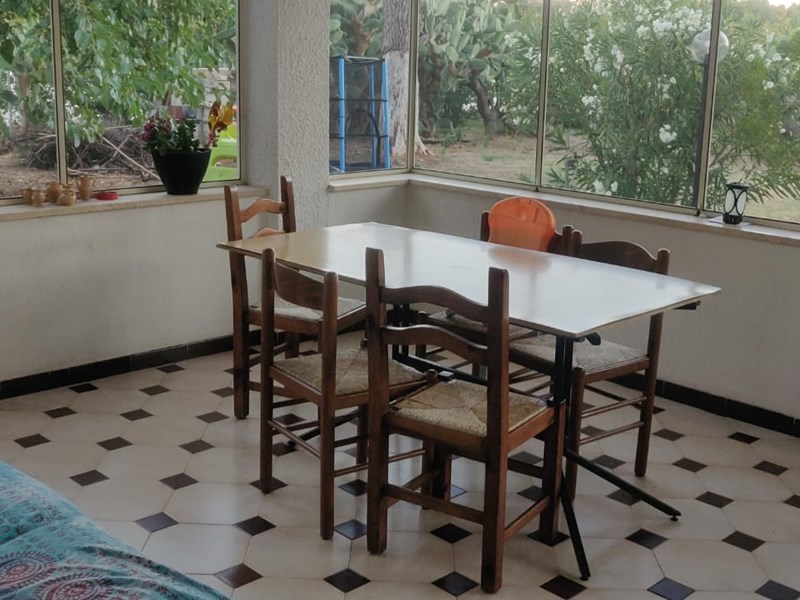 Villetta in zona Torretta, composta da ingresso, due camere da letto, soggiorno con caminetto, vano cottura. bagno e veranda, con scala esterna per raggiungere i lastrici solari. Due accessori esterni, uno dei quali bagno con doccia. Il tutto su 3.912 mq di terreno completamente recintato, con prospetto su due strade. Il terreno ospita un frutteto e vari alberi di ulivo di cui 16 secolari. Il fabbricato, con allaccio fognario alla rete pubblica, è alimentato da acque di pozzo artesiano. Possibilità di realizzare gazebo esterno e piscina.