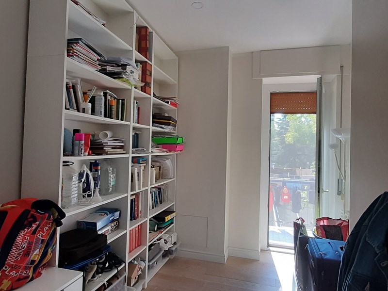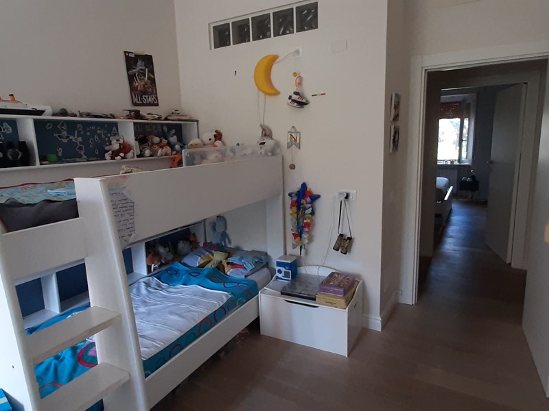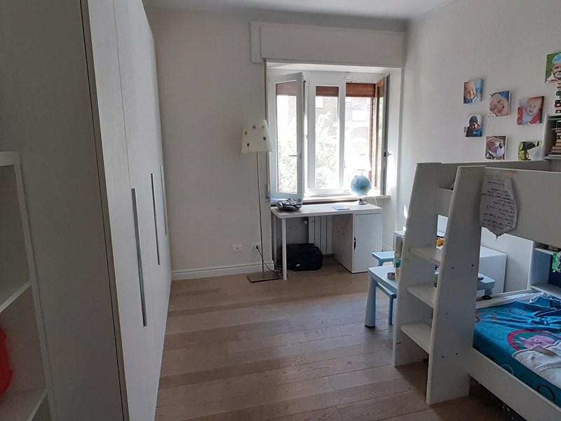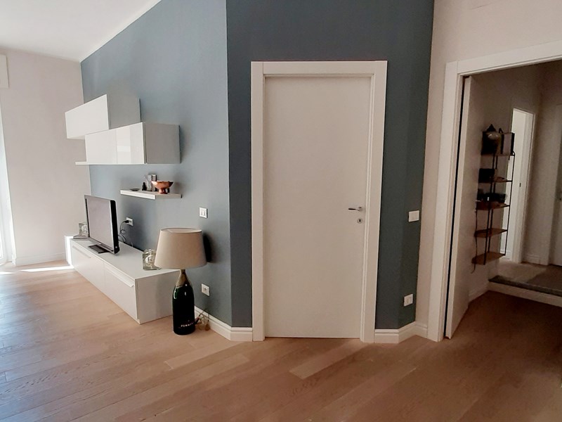 Appartamento interamente ristrutturato dotato di pavimenti in legno, impianto antifurto e predisposizione aria condizionata. L'alloggio è così composto: ingresso su sala, cucina abitabile a vista (con possibilità di ricavarne una stanza separata), 2 camere da letto, studio, 2 bagni, ripostiglio, box auto e cantina.