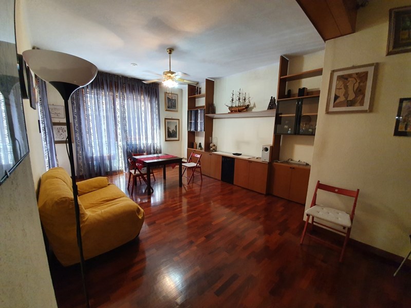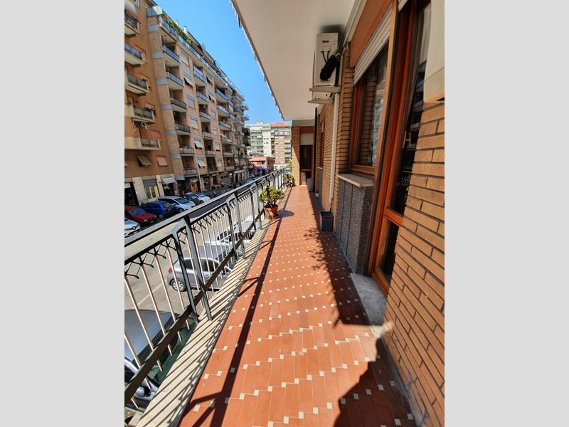 Salone (28 mq) , 2 camere matrimoniali, servizio, cucina su misura, 1 balcone ( 11 mq), luminoso.