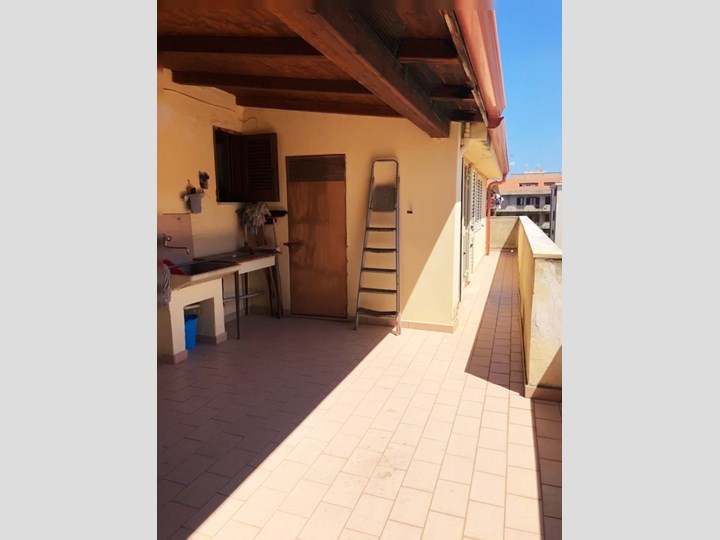 Ampia mansarda in vendita in pieno centro a S. Domenica di Ricadi. Collocata al terzo ed ultimo piano di un condominio dotato di ascensore, caratterizzata da riscaldamento autonomo e da un'ampia terrazza con tettoia e angolo vista mare. I m2 totali dell'immobile comprensivo di terrazza sono circa 135 m2.