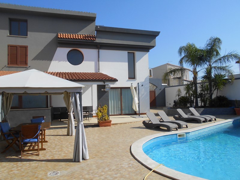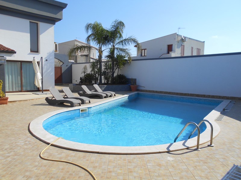 L' agenzia immobiliare Mediocasa di Castelvetrano propone in vendita una bellissima Villa indipendente con piscina, di circa 180 mq su 2 livelli con ampio spazio esterno tutto ammattonato, e posto auto scoperto. Composizione al piano terra abbiamo cucina-soggiorno, ripostiglio, salone cameretta e bagno, al primo piano con scala in marmo interna troviamo la zona notte con tre camere, e due bagni di cui uno i camera e un vano mansarda.