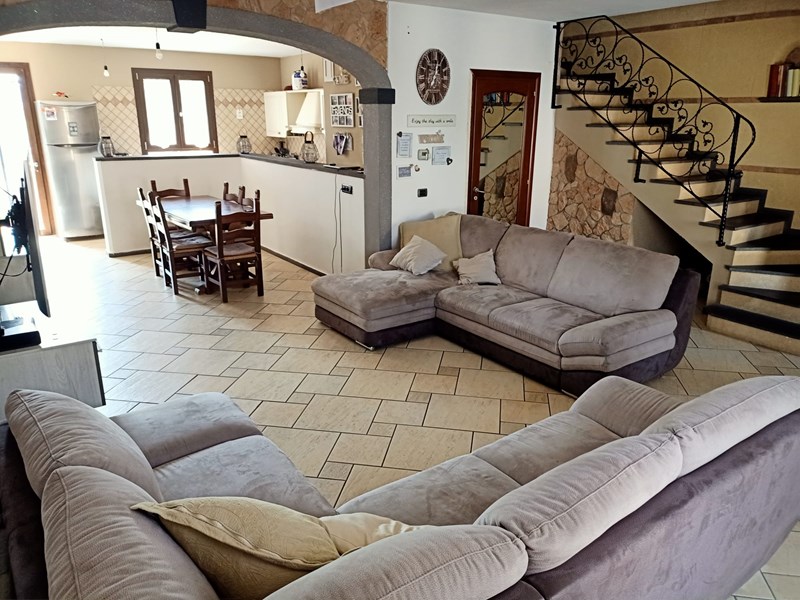 Il piano terra è adibito a zona living, come da foto. Comprende anche un ripostiglio predisposto per un ulteriore bagno con piastrelle e sanitari compresi nella vendita e lavanderia interna.