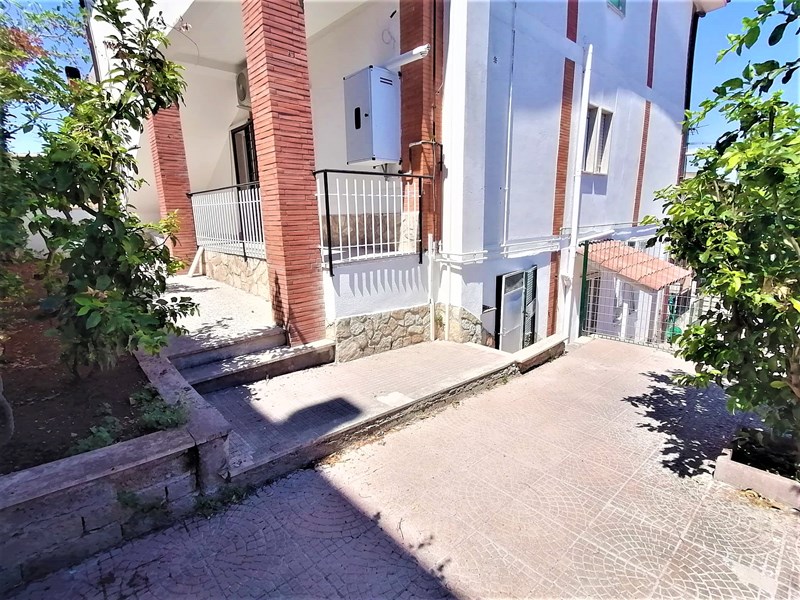 Primo appartamento di 55,00 mq con 30,00 mq di giardino esclusivo, composto da: ampio salone con angolo cottura, camera matrimoniale, bagno, terrazzino esterno, giardino esterno attrezzato con gazebo in legno ed area bbq, gode di una doppia entrata di cui una indipendente.