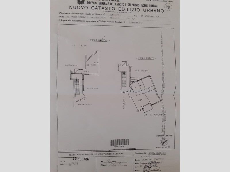 Locali fisici dell'appartamento: 6° (2 ampie camere da notte + ampio salone + cucina + bagno + ripostiglio)