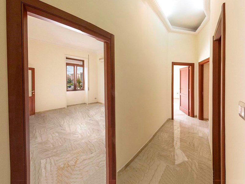 Ingresso generoso, con corridoio di disimpegno dal quale si accede alle camere tutte indipendenti con ingresso proprio e ben dislocate, esposte a sud con finestre e ampio balcone/terrazzo panoramico che si affaccia su Piazza Medaglie d’oro.