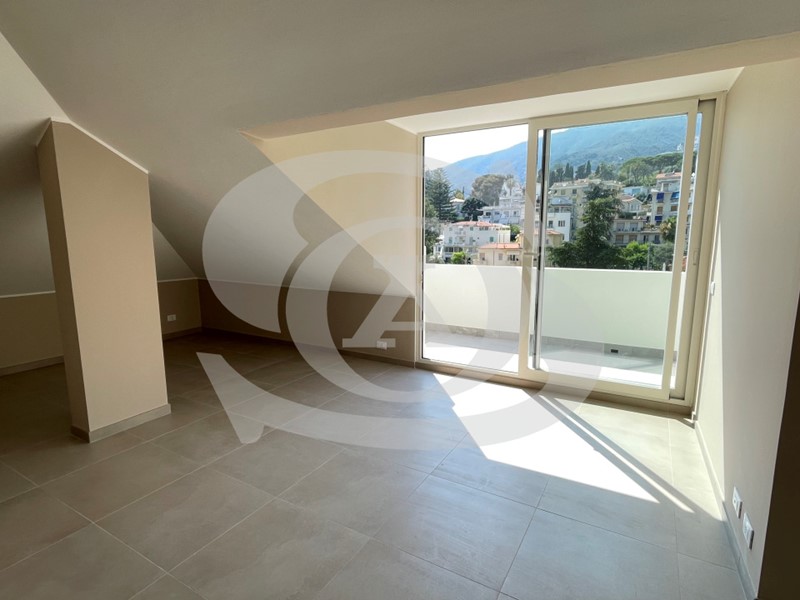 L'appartamento si trova nei pressi del Corso principale di Ospedaletti ed è sito all'ultimo piano mansardato di uno stabile da cui è possibile ammirare una splendida vista mare.