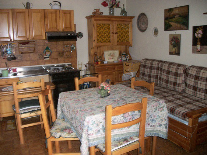Appartamento all'interno di un residence a 50 metri dal centro - Piano terra con giardino interno privato di 400 mq e patio - Composto da soggiorno con camino e angolo cottura - Camera da letto - Cameretta - Un bagno - Ripostiglio - Posto auto