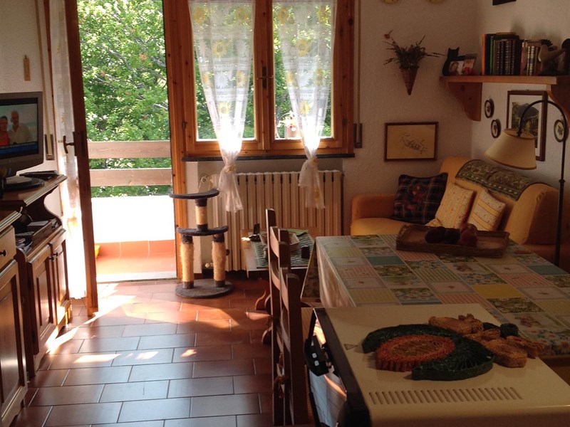 vendo bilocale arredato, 4 posti letto più divano letto, garage coperto, posto auto assegnato, a pochi metri dalle piste da sci, teleriscaldamento, stufa pellet, doppi vetri, tetto coibentato, antenna satellitare e sky, a 10 minuti dal lago Calamone , 1330 m. di altezza