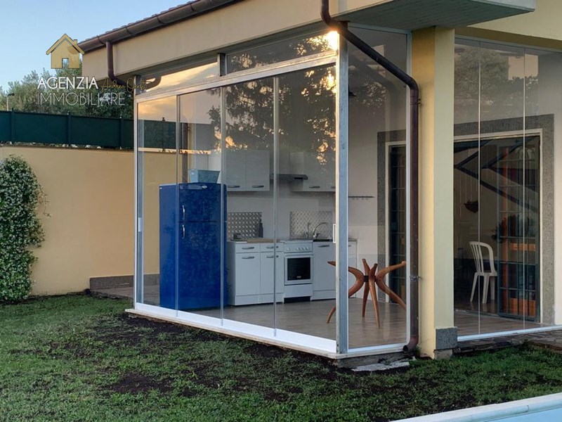 Piano terra composta da: salone con ampia portafinestra che da sul giardino a VISTA MARE, spazioso bagno, attacchi per cucina interna.