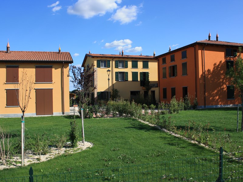 in vendita diverse tipologie di unità immobiliari inserite in borgo immerso nella campagna emiliana: vivere nel verde senza rinunciare alle migliori soluzioni tecnologiche