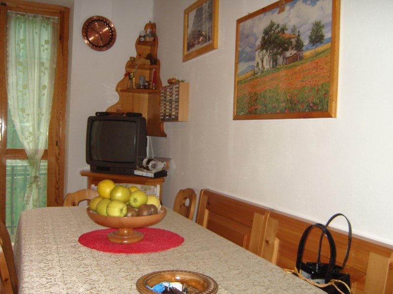 Al piano inferiore grande Open Space con angolo cottura, grosso tavolo su misura con panca, divano letto e bagno. Al piano superiore da cui si accede tramite una particolare scala in ferro battuto troviamo una grande stanza Open Space con un letto matrimoniale e un letto a castello con tre posti letto.armadio comò e tutto il necessario. Completa la proprietà un balcone che affaccia sul monte che, sia in estate sia in inverno regala uno spettacolo meraviglioso e una cantina. posto auto libero nella piazza condominiale privata sotto il palazzo. Ottimo punto di partenza per numerose escursioni camminate Sport e immersioni nella natura