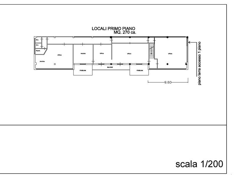 -Locale di mq.270 disposto al primo piano con ingresso e accesso laterale.