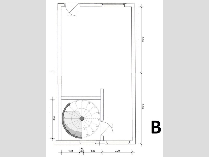 Era stata pensata anche una variante di questo caso, facendo uscire da primo piano in poi metà rampa delle scale sul