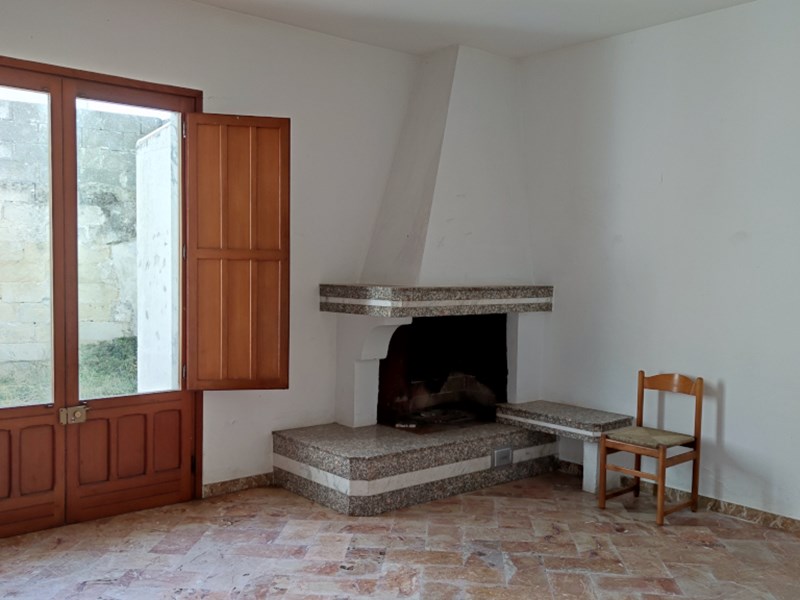 Al piano terra si accede da una prima stanza a volta, che è stata soppalcata e da cui è stato ricavato un corridoio, che conduce alla stanza retrostante. Anche questo secondo vano è impreziosito da un soffitto con la tipica volta a stella. La zona giorno è servita da un primo bagno. Un ampio disimpegno ospita la scala, che porta al piano superiore e su cui è posta una finestra che illumina tutta la zona sottostante. La sala nella parte posteriore della casa è ampia e luminosa, con un grande caminetto in marmo. Da qui si accede al giardino, costeggiato esternamente da una strada privata, che dona particolare tranquillità a questa parte della casa.