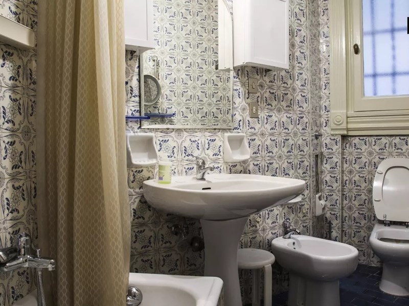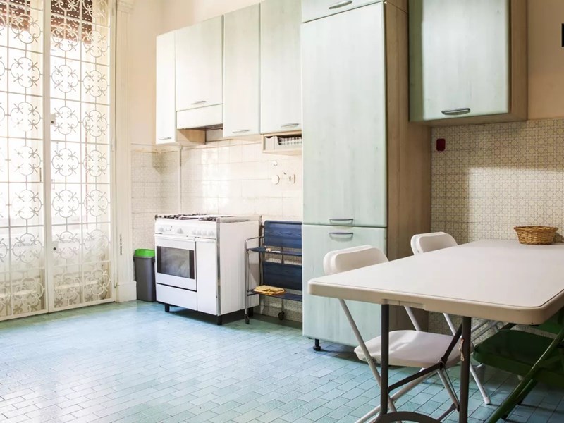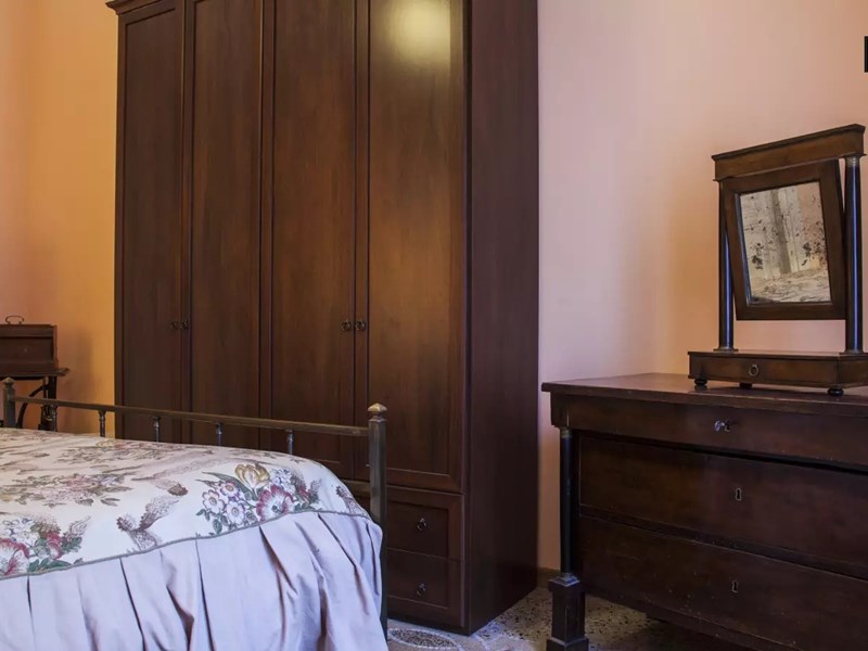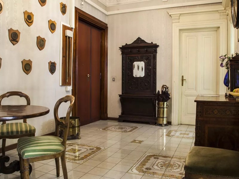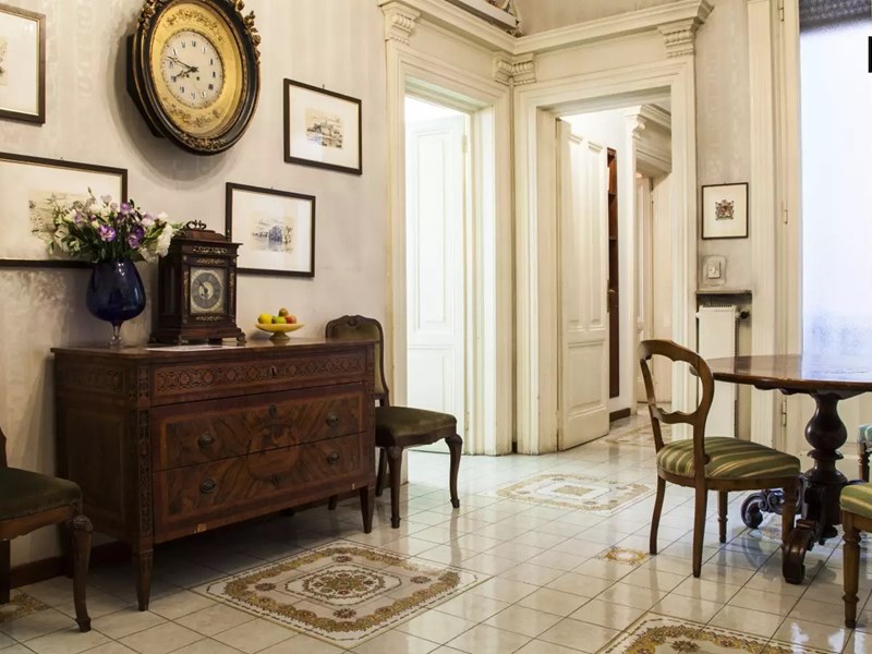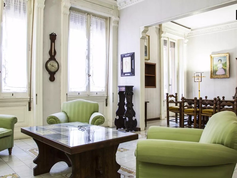 Grande camera in appartamento elegante di 240 mq con 4 camere, ingresso, salone, due bagni, cucina attrezzata, balconi, riscaldamento, ascensore, portineria.