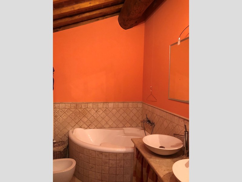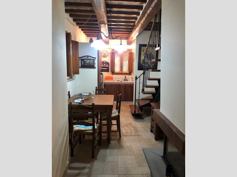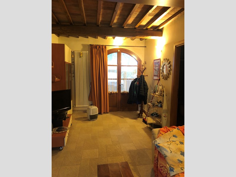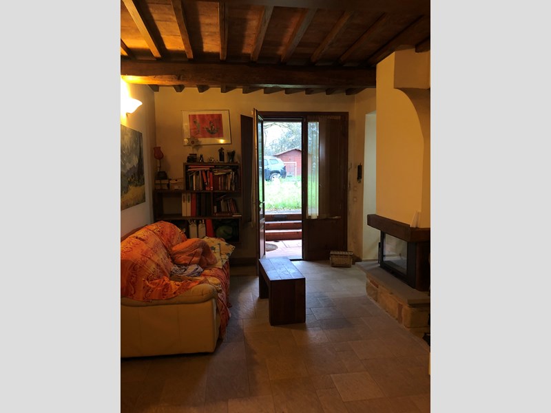 Ingresso indipendente nella campagna Toscana, 2 giardini per complessivi 300 mq, uno con loggiato e predisposizione piscina fuori terra e uno con cassetta di legno di 12 mq; composto da soggiorno, bagno con doccia , camino trifacciale che divide il soggiorno dalla cucina in muratura e mobili in castagno, ampia camera matrimoniale con bagno in travertino con vasca relax