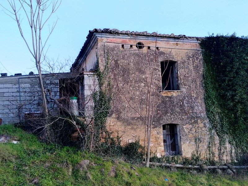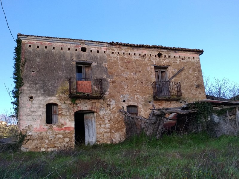 CESPITE IMMOBILIARE COSTITUITO DA TERRENO OLIVETATO DI METRI QUADRATI 24.600 CON ENTRO FABBRICATO ABITATIVO COMPOSTO DA N. 2 CAMERE, CUCINA SOGGIORNO, BAGNO DISIMPEGNO E CANTINA, GARAGE, CAPANNONE AGRICOLO, DEPOSITO AGRICOLO, VECCHIO FABBRICATO RISTRUTTURABILE, POZZO ARTESIANO, ZONA SOLEGGIATA E PANORAMICA ACCESSIBILE DA STRADA PUBBLICA CON STRADA PRIVATA ASFALTATA, DISTA DA STATALE 90 BIS METRI 800