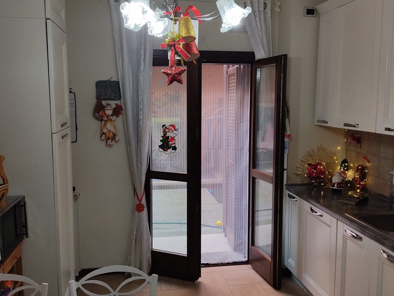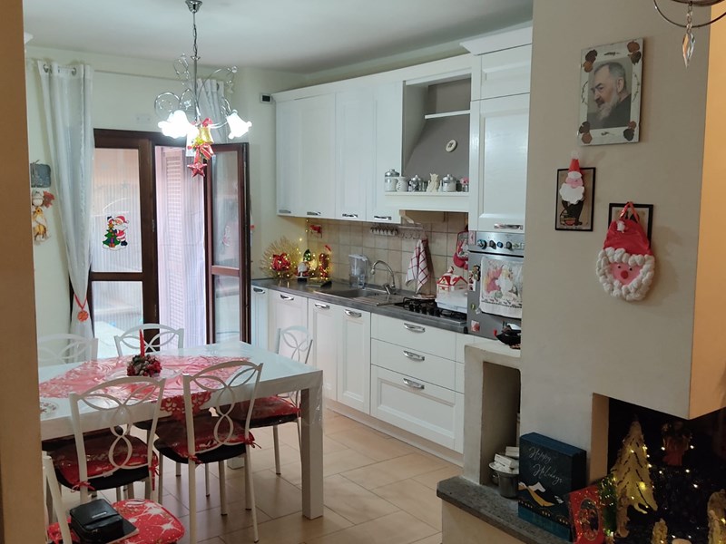 L’immobile è composto da 3 camere, camino a vista, cucina abitabile, doppi servizi, ampio terrazzo pavimentato di 50mq, posto auto condominiale e cantina.