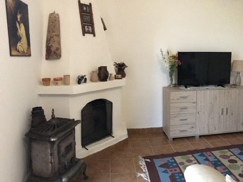 Ingresso in soggiorno con angolo cottura e camino;