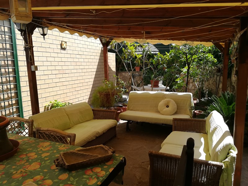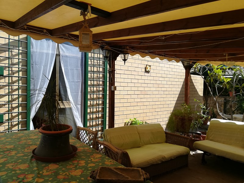 L'appartamento si compone di tre camere,soggiorno, cucina abitabile, cameretta ripostiglio, due bagni e cantina, possibilità di posto auto esterno. 90mq coperti piu' ampio giardino pavimentato, con all'interno gazebo di 15mq. L'esterno sono oltre 70 mq, Ingresso condominiale e indipendente dal giardino.
